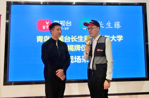 紧接着,激动人心的揭牌仪式举行。山东微视台融媒体学院执行院长郭岩与李志宇校长共同为“青岛微视台长生藤中老年大学”揭牌,艺术总监孙赛男现场协助,多位特约记者和讲师代表共同上台见证这一历史性时刻,现场掌声雷动,气氛达到高潮。