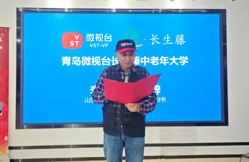 山东微视台执行主编李顺林代表微视台发表致辞。他充分肯定了青岛微视台长生藤中老年大学的创新模式,并表示微视台将持续提供平台支持,助力更多中老年人拥抱数字时代,展现银发风采。