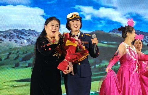 在艺术团团长李翔宣布“庆典演出正式开始”后,四位主持人贾凤青、高卫兵、张书宝、张艳萍、精神焕发地登台。他们以铿锵有力、饱含深情的开场词,瞬间点燃了全场热情。