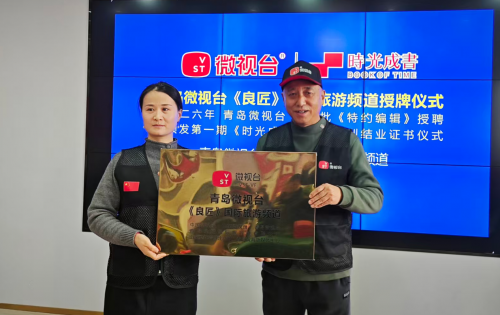 2026年1月8日下午,冬日暖阳,情谊融融。在青岛市创意文化产业园5楼会议室,一场汇聚智慧与活力的新媒体盛会暨青岛微视台《良匠》国际旅游频道授牌仪式、2026年首批《特约编辑》授聘和青岛微视台第一期《时光成书》编创培训班结业颁发证书仪式,在此隆重举行。