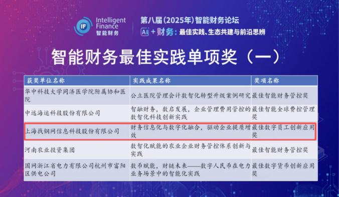 标题:找钢网获智能财务大奖,引领财务新变革