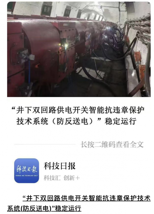 “井下双回路供电开关智能抗违章保护技术系统(防反送电)”稳定运行