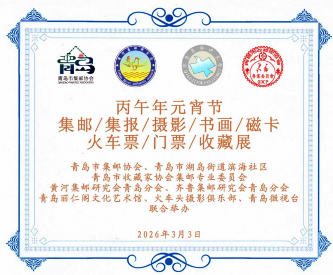 微视台传媒 网讯(微视台传媒 特约编辑 李顺林 郭岩 宋维斌 刘欢玲 采编报道)正月十五寒意未退。在青岛市市北区湖岛街道滨海社区里却喜气洋洋、暖意融融,一场别开生面的文化盛宴——“丙午年元宵节集邮、集报、摄影、书画、磁卡、火车票、门票等收藏联展”在这里隆重启幕。本次活动由青岛市集邮协会、滨海社区党委、青岛市收藏家协会集邮专业委员会、黄河集邮研究会青岛分会、齐鲁集邮研究会青岛分会、青岛丽仁阁文化艺术馆、火车头摄影俱乐部、青岛微视台等多家单位联合主办,将传统佳节与收藏文化深度融合,为社区居民献上一场充满藏香艺韵与历史温度的精神盛宴。
