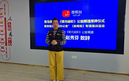 青岛微视台《银光益彩》公益频道总监赵秀芬在致辞中表示:“银光”代表长者智慧与岁月沉淀,“益彩”寓意公益事业的多彩绽放。我们将聚焦老年群体、社区善行与暖心故事,用真实影像和动人文字,让每一份微光都被看见。