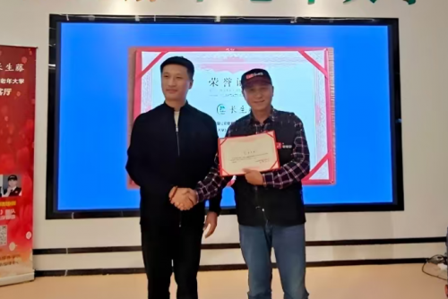 在荣誉授予环节,李志宇校长分别为特约记者:赵秀芬、孙赛男和长生藤中老年大学:侯凯、杨光龙等优秀教师颁发“荣誉证书”和“讲师证书”,感谢他们在课程建设、教学实践和艺术指导方面的辛勤付出。