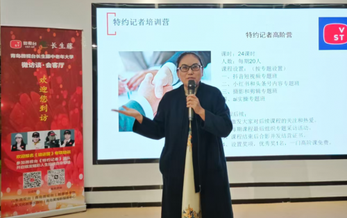 随后,青岛微视台融媒体学院执行院长刘雅竹详细介绍了“特约记者”培训营项目。该项目旨在通过系统化课程培训,帮助中老年学员掌握新闻采编、短视频拍摄、新媒体运营等实用技能,鼓励他们走出家门、记录生活、传播正能量,真正成为社区故事的讲述者和时代变迁的见证人。
