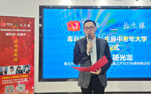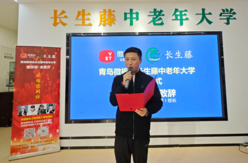 山东微视台执行主编李顺林代表微视台发表致辞。他充分肯定了青岛微视台长生藤中老年大学的创新模式,并表示微视台将持续提供平台支持,助力更多中老年人拥抱数字时代,展现银发风采。