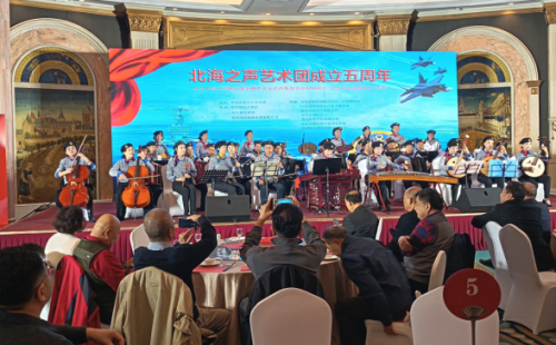 北海之声艺术团自2020年11月成立以来,始终秉持传承红色基因、弘扬军旅精神的初心。团队由现役与退役军人以及第一代北海舰队军人子弟组成,在名誉团长赵小锐、声乐指导赵小平、客座指导王茗教授等名家的悉心指导下,不断锤炼艺术水准,先后推出《海魂衫之歌》《三颗子弹》等一批优秀原创作品,从社区舞台逐步走向省级乃至国际赛事,并荣获国际手风琴大赛金奖,实现了艺术上的持续突破与广泛“出圈”。