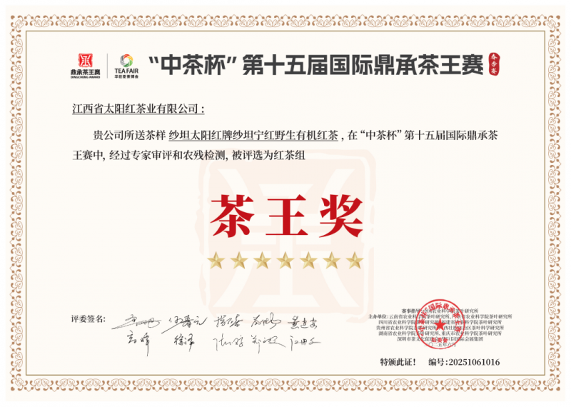 自此,身份既明,品质认证与标准建立也不容忽视。李义全始终将品质视为生命,坚持野生茶“一年只采一季春芽”的铁律,让茶树得以休养生息。2020年5月,太阳红茶业荣获全国首张野生茶有机认证证书,这一突破如同一声春雷,震醒了整个行业,也被江西省委宣传部领导赞为“这是中国茶界划时代的重要标志”。此后,多项权威认证接踵而至,为产品筑起了坚实的品质长城。